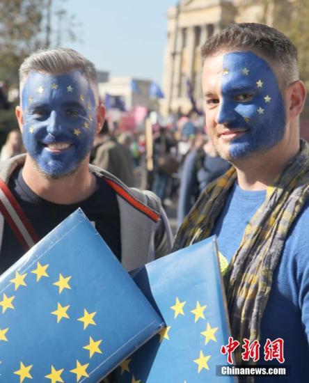 資料圖:當地時間2018年10月20日,67萬英國民眾匯集在倫敦議會廣場舉行示威游行活動,呼吁對英國脫歐最終協議舉行全民投票。