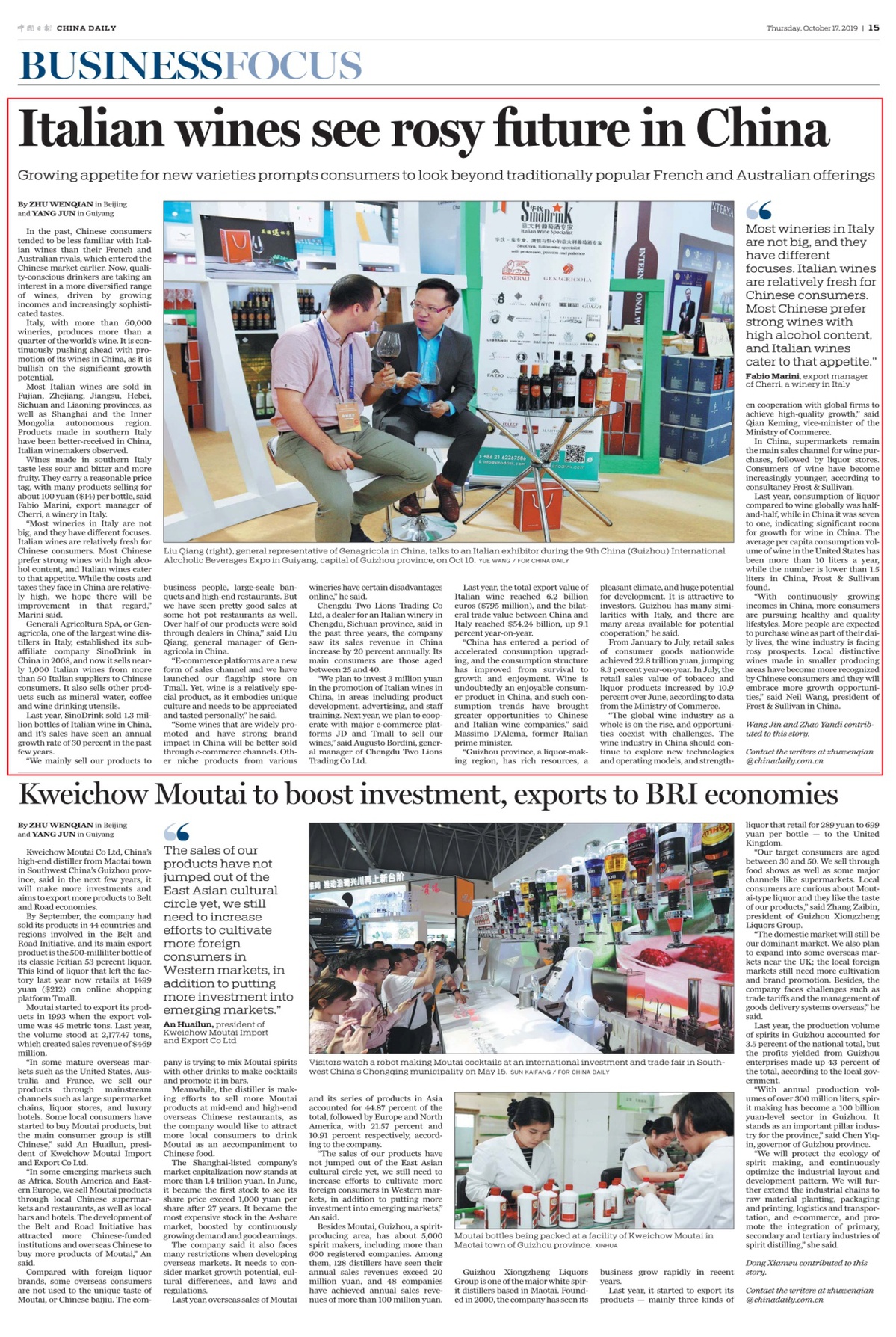 然而目前,意大利葡萄酒外銷中國的成本和稅收都太高,他希望今后這方面的問題能有所改善。