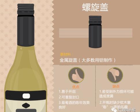 上世紀(jì)70年代,一些酒商深受軟木塞污染的困擾,開始嘗試用螺旋蓋來封瓶。采用螺旋蓋封瓶的葡萄酒無需任何開瓶器便能輕松開啟。這種瓶塞不存在木塞污染,且溫度和濕度的變化幾乎不會給螺旋蓋帶來任何影響。如果一瓶葡萄酒開瓶后還沒飲用完,只需重新蓋上螺旋蓋即可。另外,使用螺旋蓋封瓶的葡萄酒在存放的時候不需要水平放置,許多葡萄酒還能在瓶中很好地陳年。