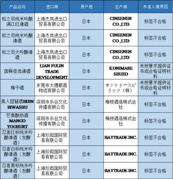 89批次被拒絕入境的進口酒中,啤酒50批次,占比56%;葡萄酒25批次,占比28%;日本酒(包括日本清酒、梅子酒等)10批次,占比11%;配制酒(雞尾酒、利口酒)4批次,占比5%。