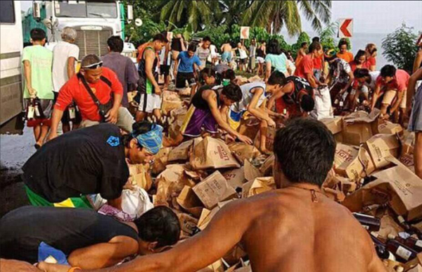 菲律賓一卡車側翻 一車白蘭地遭哄搶