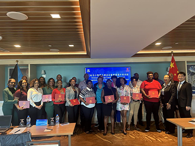 2024年9月25日,巴哈馬小型精品酒店運營管理海外班結業儀式在拿騷舉行。使館經商工作負責人彭晶、巴哈馬旅游、投資和航空部官員、參訓學員等參加。