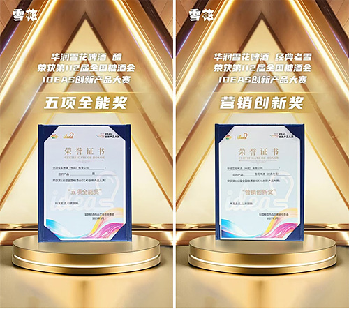 3月25日,第112屆全國糖酒會IDEAS創(chuàng)新產品大賽舉行頒獎儀式。本次比賽聚焦“產品創(chuàng)新組、包裝設計組、舌尖美味組、營養(yǎng)健康組、營銷創(chuàng)新組”五大核心賽道。最終,在160余個品牌、390多款產品的競爭中,雪花啤酒(經典老雪)憑借其卓越的營銷洞察力摘得“營銷創(chuàng)新獎”,而雪花啤酒的超高端產品“醴”,以其綜合實力斬獲全場最.高榮譽 “五項全能獎”。