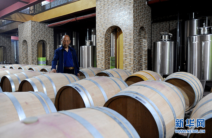 8月21日,吳忠市紅寺堡區(qū)東方裕興酒莊工作人員在檢查葡萄酒窖藏情況。近年來(lái),地處賀蘭山東麓的寧夏吳忠市紅寺堡區(qū)利用地理位置、土壤、氣候等優(yōu)勢(shì),大力發(fā)展葡萄酒產(chǎn)業(yè),依托“企業(yè)+基地+農(nóng)戶”的合作模式,形成集釀酒葡萄種植、葡萄酒生產(chǎn)、銷售、葡萄酒文化旅游于一體的產(chǎn)業(yè)鏈。目前,紅寺堡區(qū)釀酒葡萄種植面積10.6萬(wàn)畝,注冊(cè)葡萄酒企業(yè)28家,產(chǎn)值達(dá)4億元,葡萄酒產(chǎn)業(yè)成為當(dāng)?shù)卦鍪崭幻竦闹鲗?dǎo)產(chǎn)業(yè)。